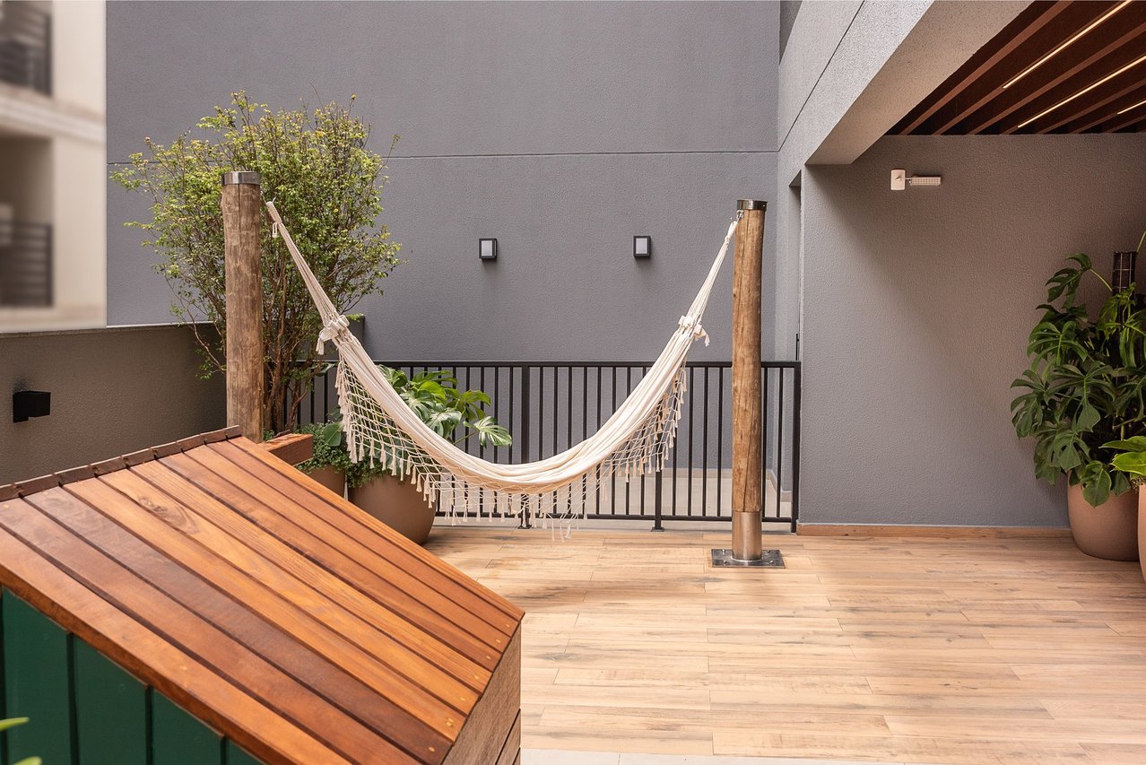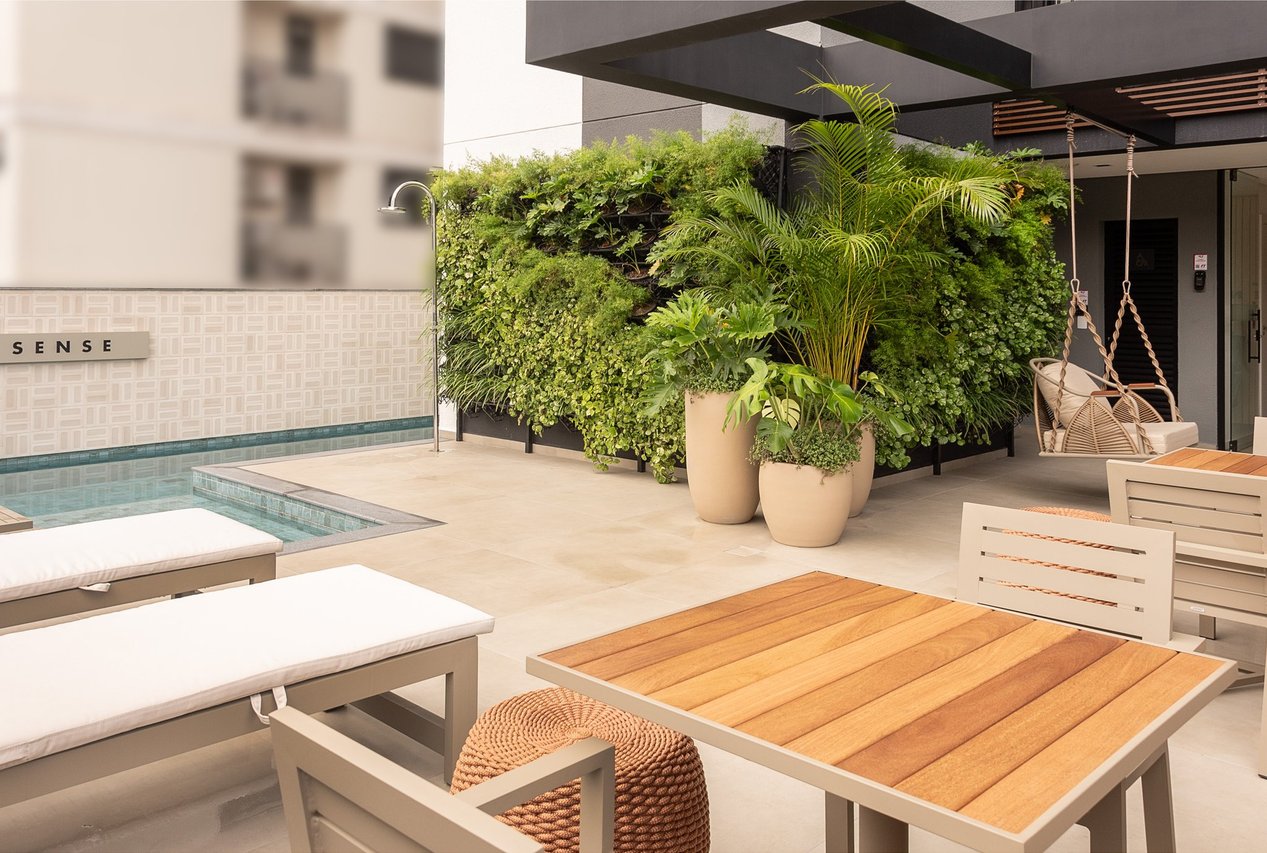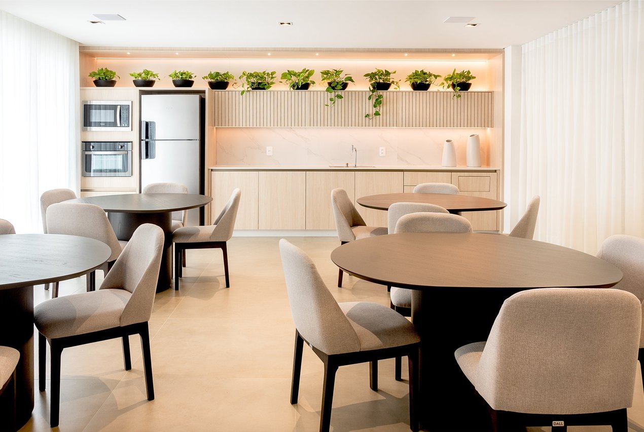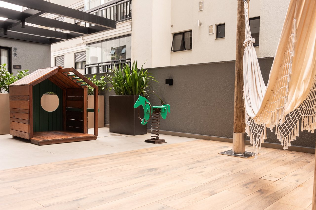 Área de lazer completa para atender toda a família com piscina com deck molhado e cascata, academia, sala de jogos, espaço wellness, banho pet, bike compartilhadas com pequena oficina para reparos,lounge fogo de chão, coworking, salão de festas gourmet, máquina de gelo para uso dos moradores.
