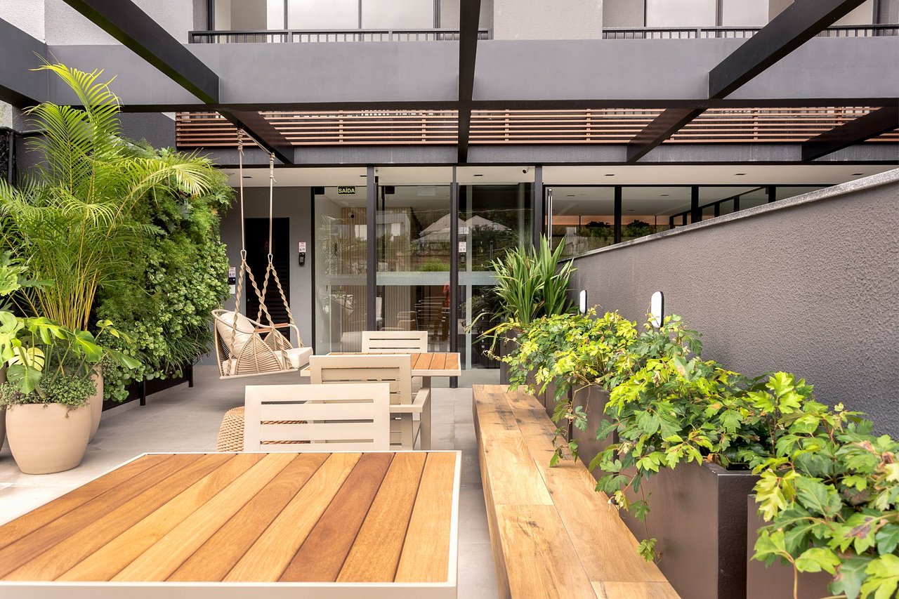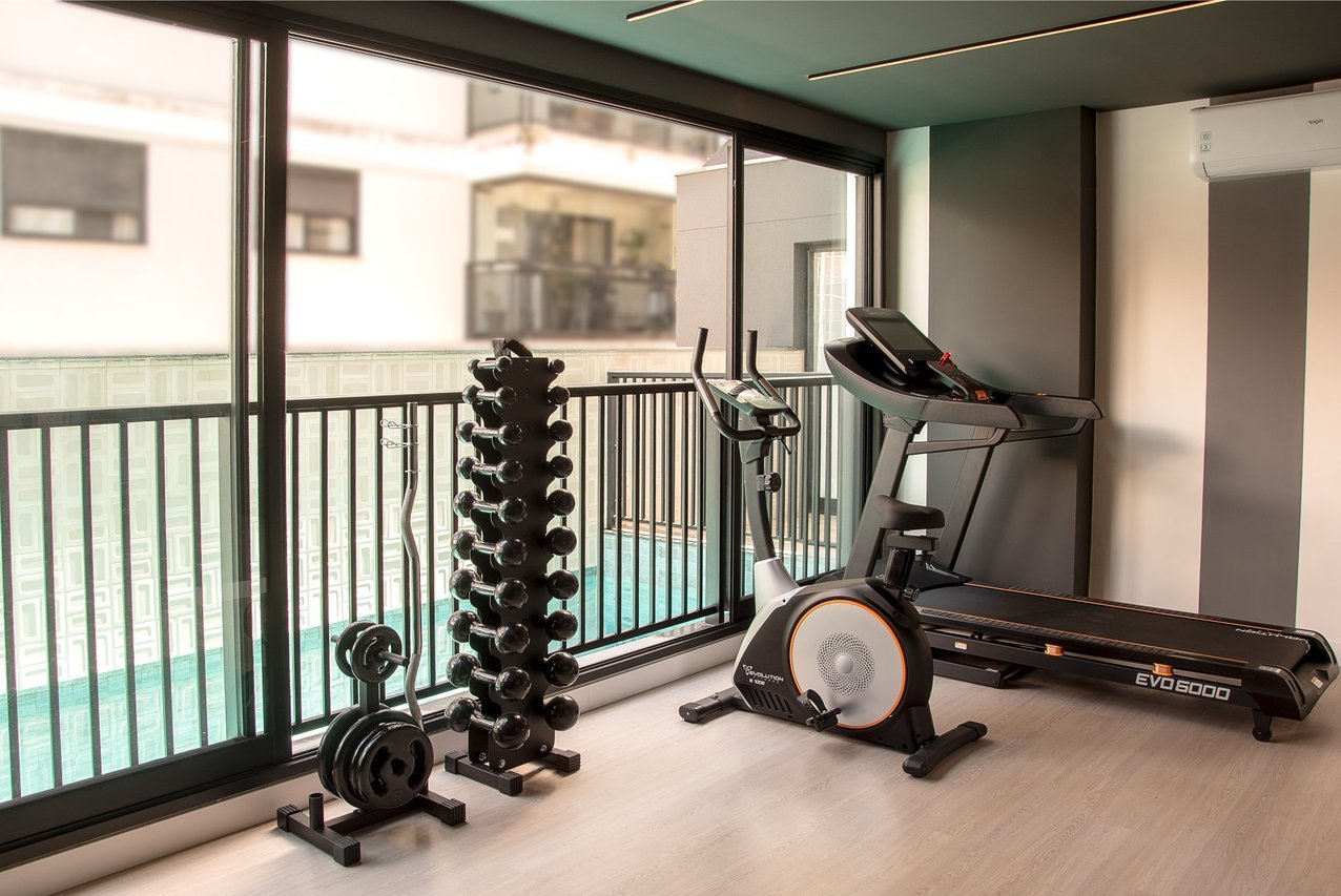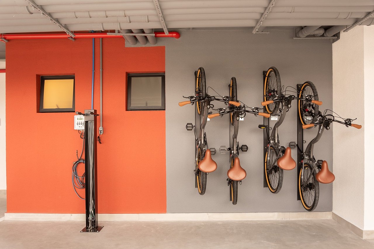O condomínio ainda conta com 2 elevadores, barra para alongamento pós corrida, internet nas áreas comuns, estacionamento de bikes para visitantes, controle de acesso com biometria e todas as áreas comuns serão entregues equipadas, decoradas e climatizadas.