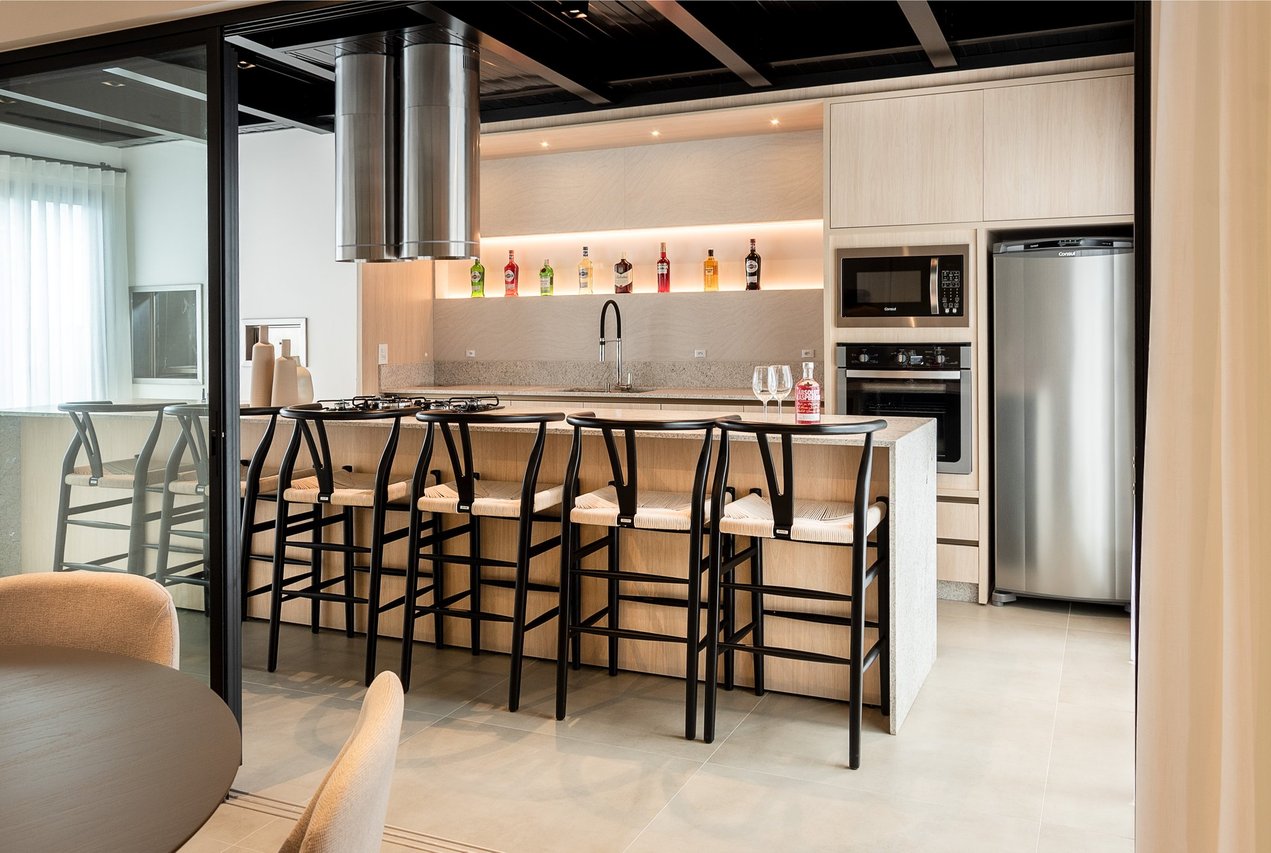 Com plantas de 77,98m² de 1 suíte, 2 dormitório, sala de estar e jantar, cozinha, área de serviço, sacada com churrasqueira integrada e uma vaga de garagem.